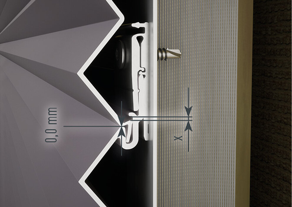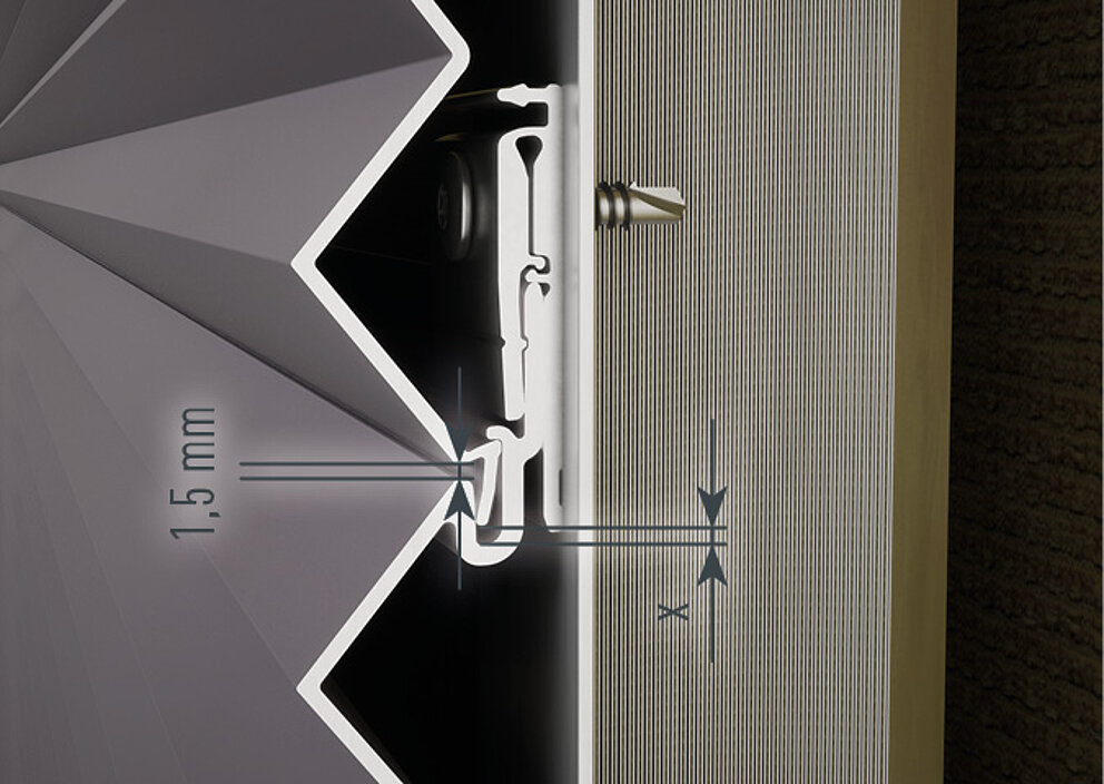 A combined installation of profiles with and without sliding clips is not permitted, as the construction height of the sliding clip (2.1 mm) creates different installation planes.