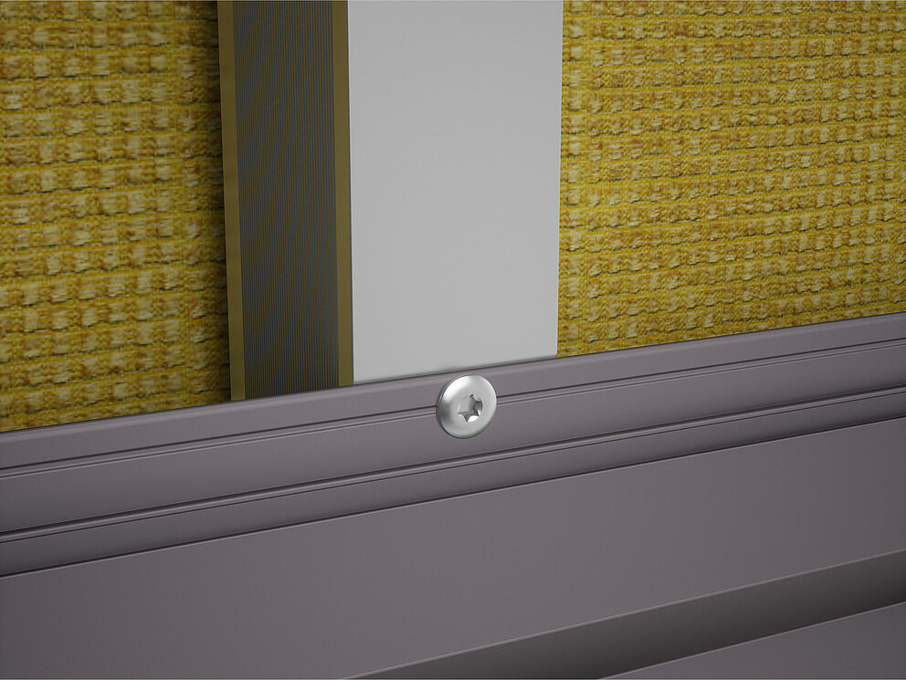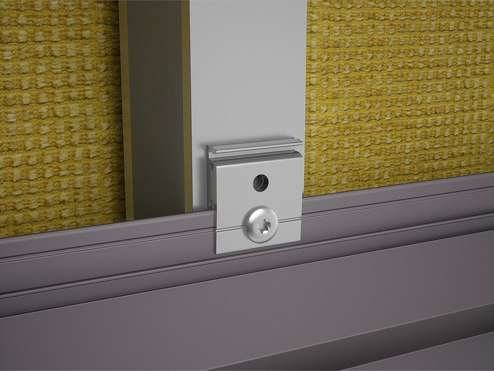The drilling screw is screwed through the pre-punched drill hole in the clip, allowing the extruded profiles to be installed in such a way that they can expand.