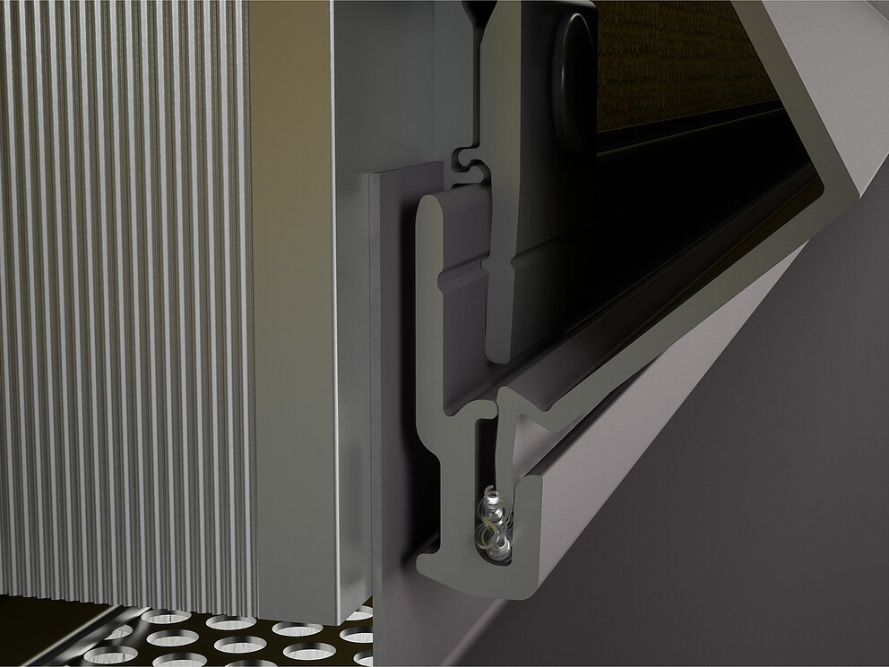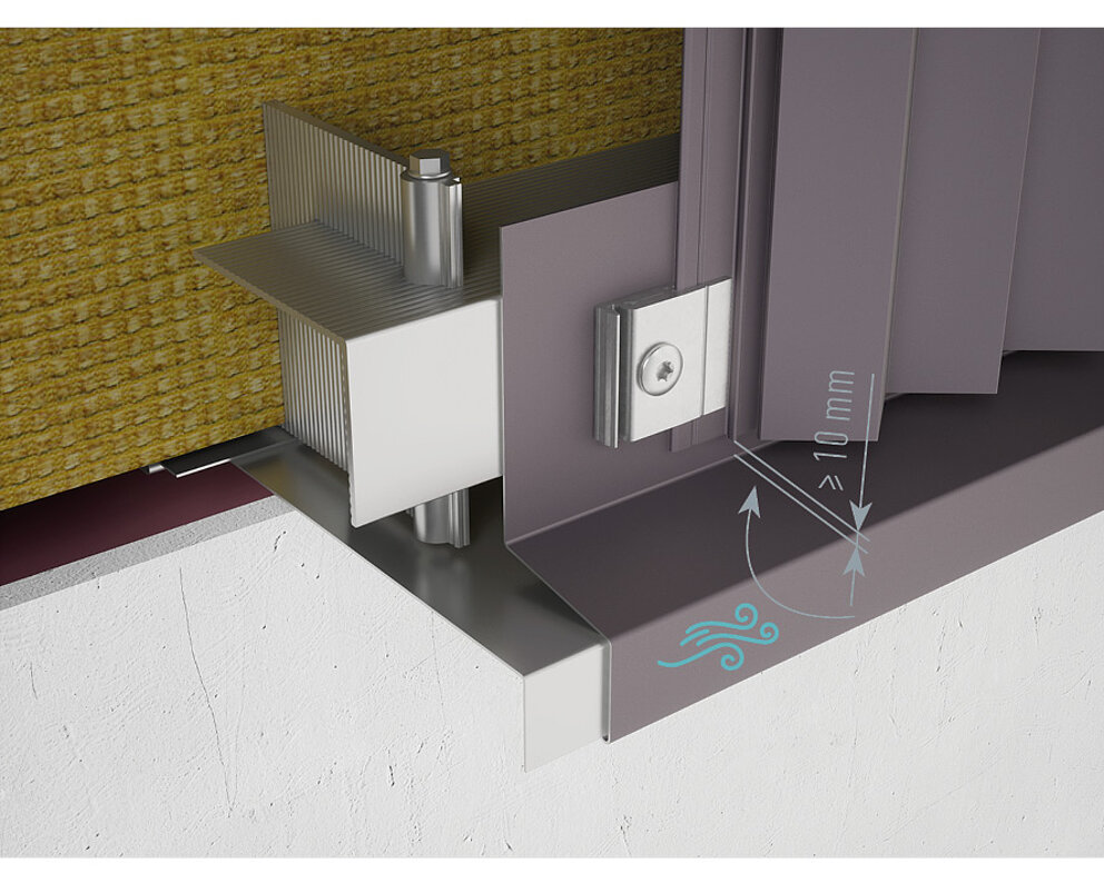 In order to ensure adequate air inflow via the rear ventilation for the extruded profiles, the spacing between the lower edge of the profile and the drip edge must be min. 10 mm.