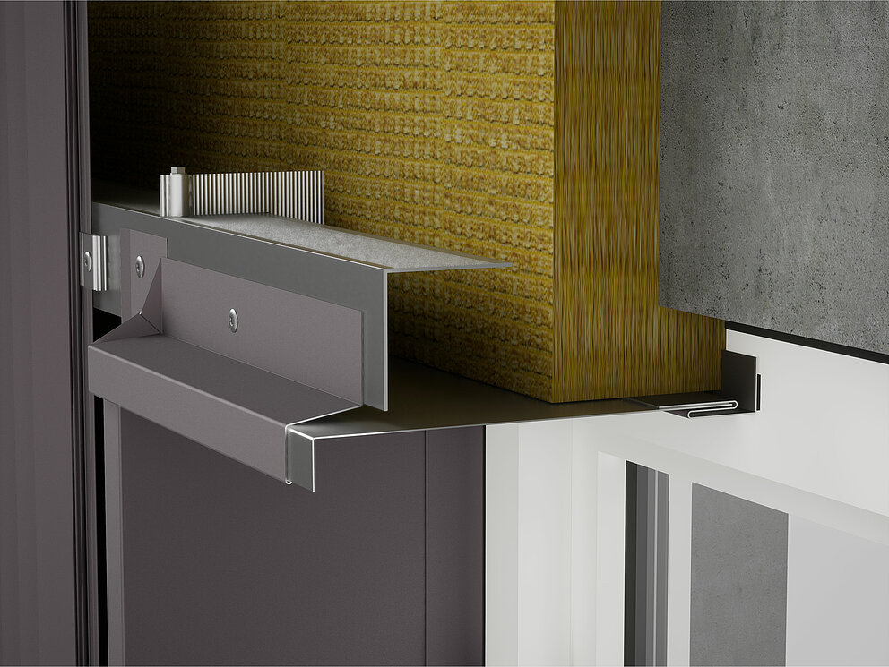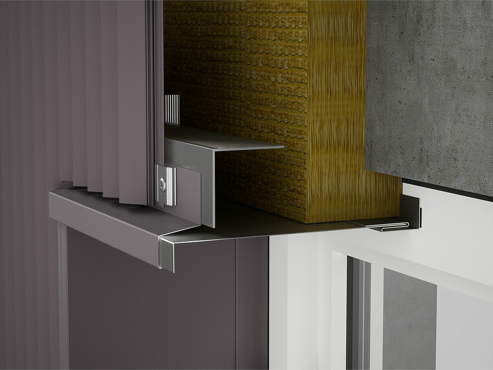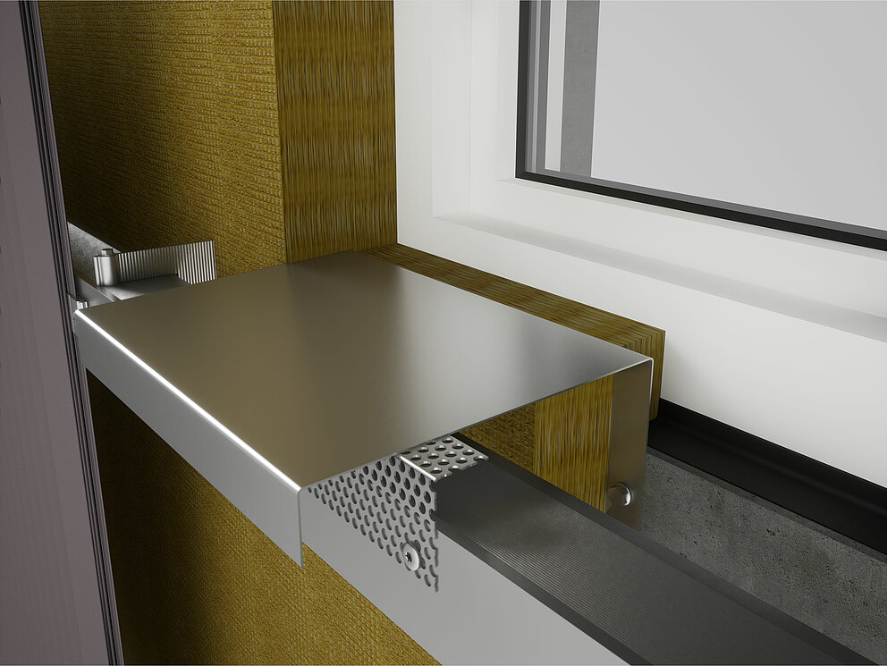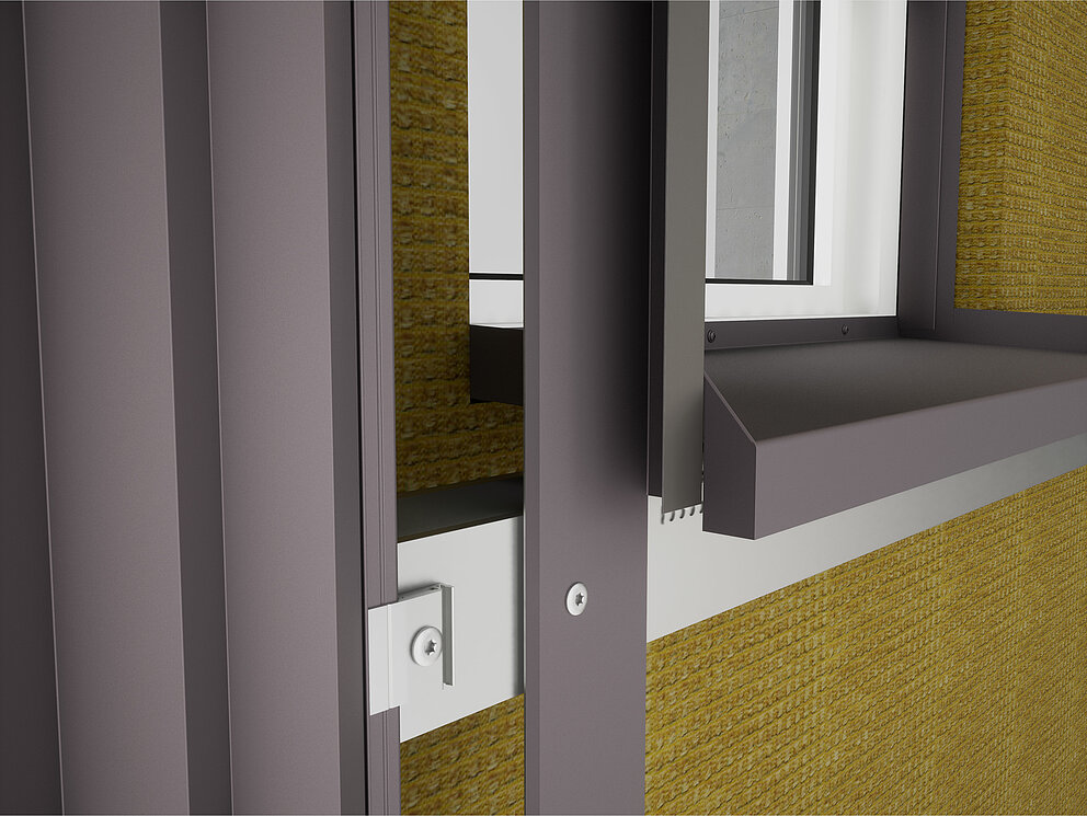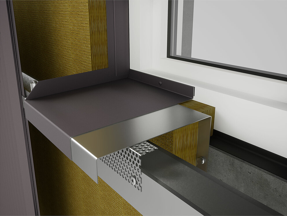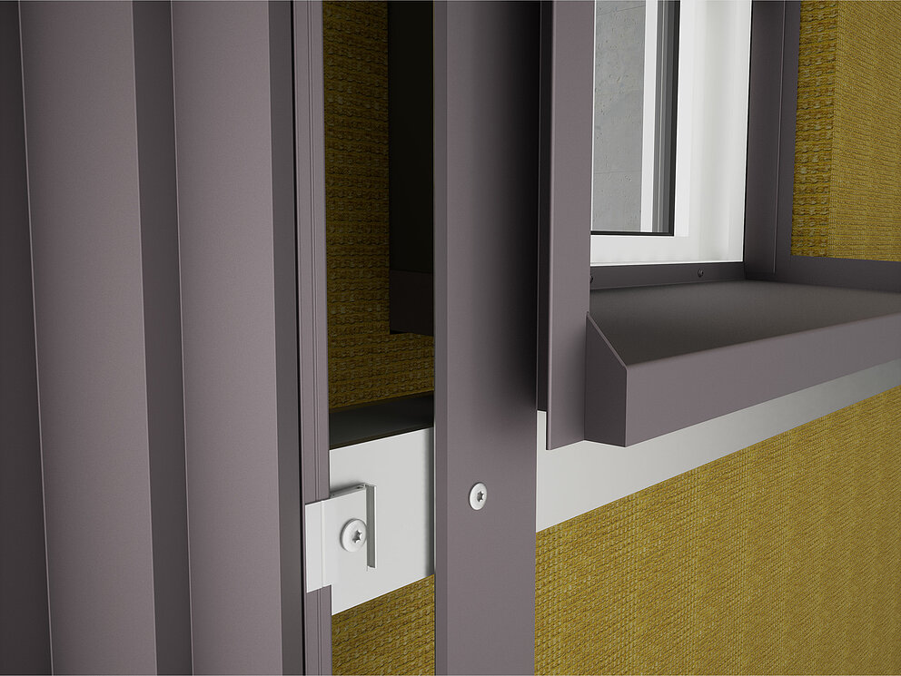 Then the fixing brackets for the soffit plate are screwed into the substructure on the left and right of the window. At the same time, the connector strips for the soffit plate and the connector strips for the window lintel are fastened to the window frame or brickwork.