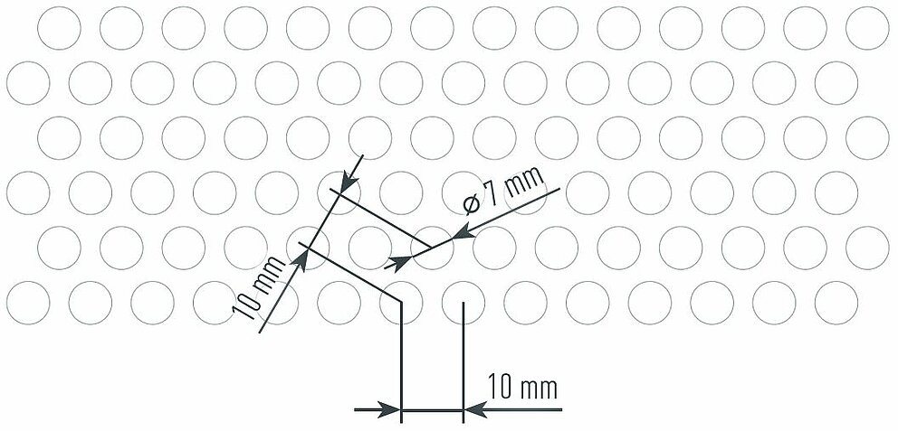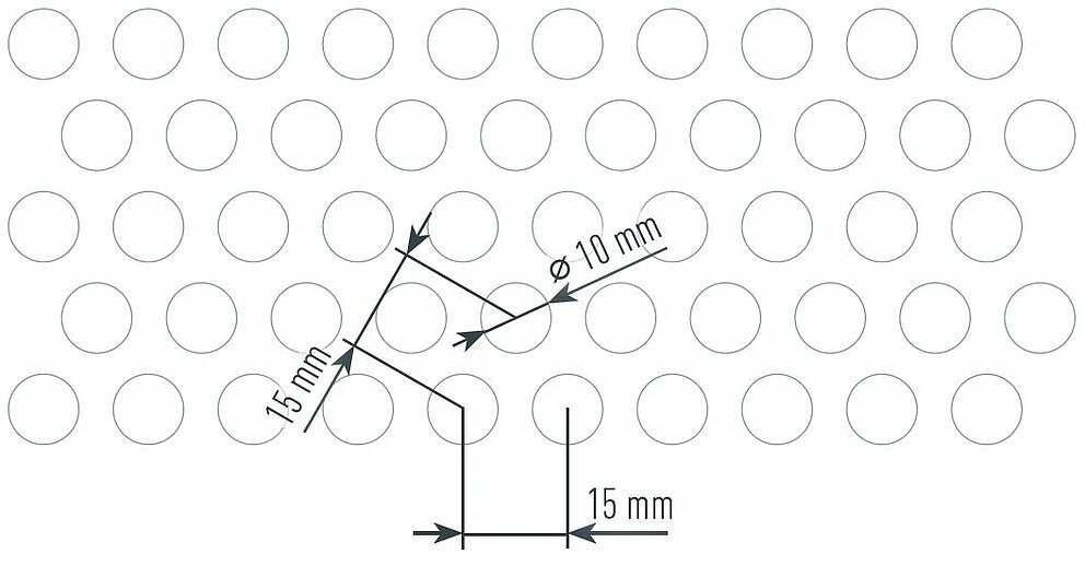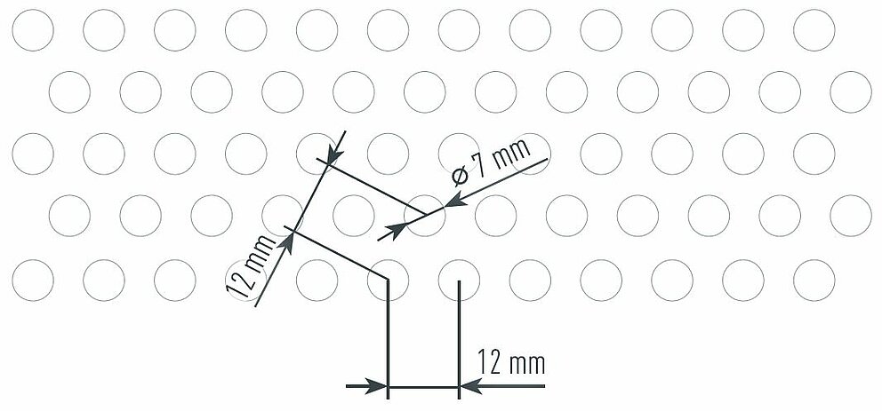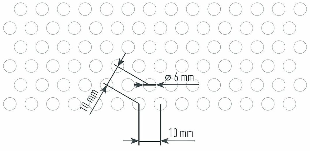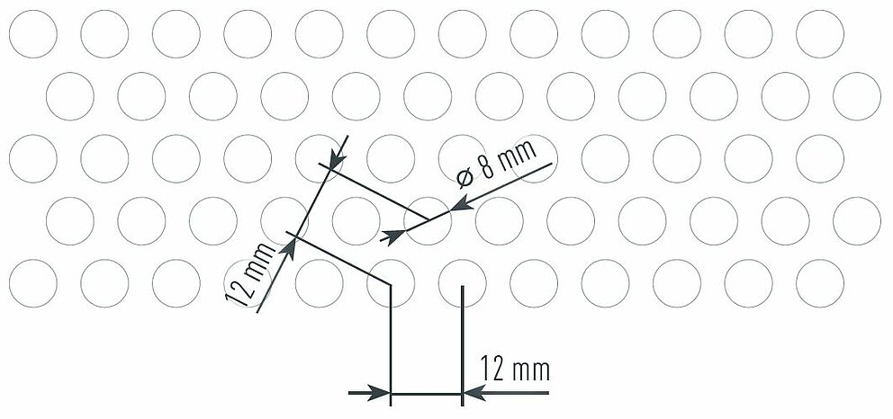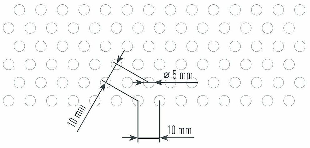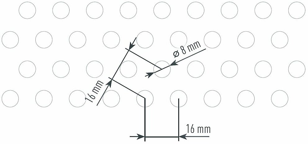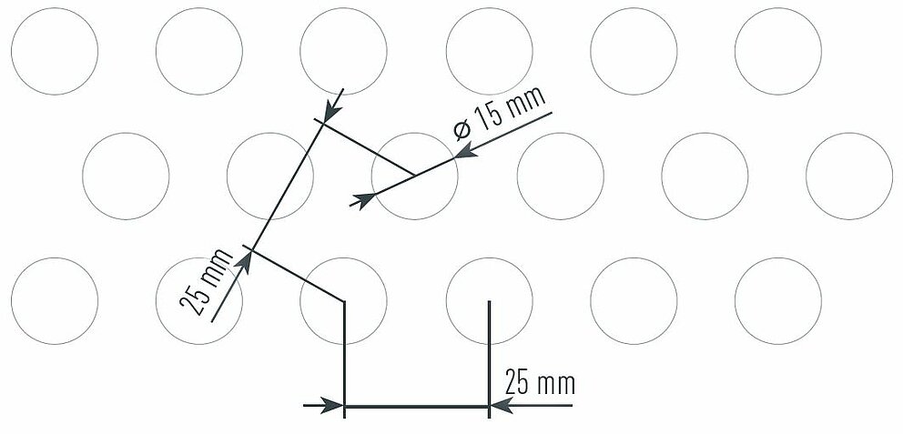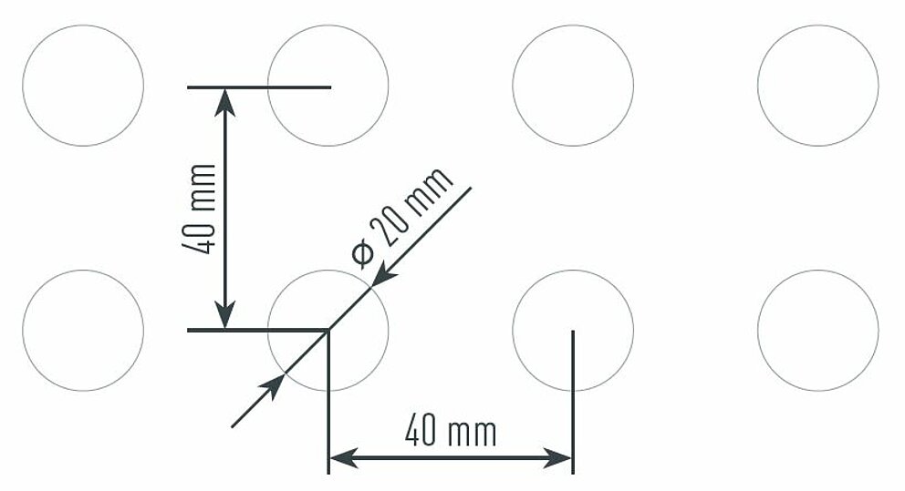 Perforated PREFABOND composite panels have a consistent hole pattern. Due to the mineral structure of the core, perforation with punching machines is not recommended for the PREFABOND with A2 core.