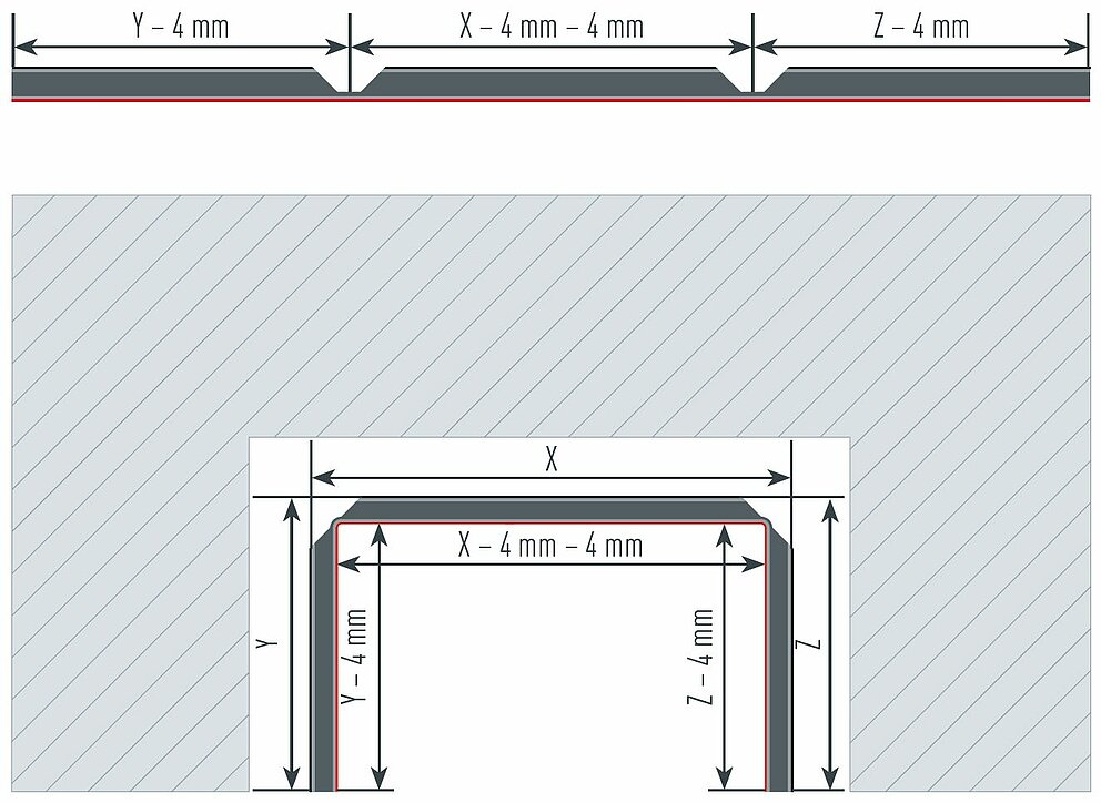 For an external corner, the material thickness of the composite panel (4 mm) is added to the actual measured dimensions.