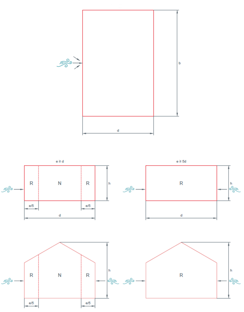The specified minimum number of clips takes into account a partial safety factor of 1.35 and are to be understood as theoretically determined values. R = edge area (External pressure coefficient cpe = –1.4), N =main area (External pressure coefficient cpe = –1.1).