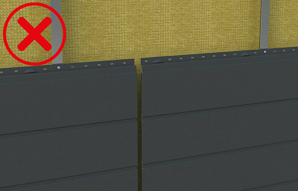 For installation in a straight line, join the siding to a sub-structure framework support profile to be able to install the joint connection.