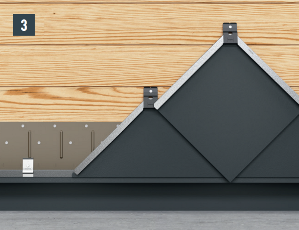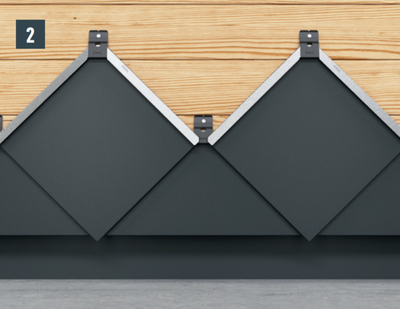 Each 29 × 29 rhomboid façade tile is fastened with a clip and a supplied ring nail 2.8/25.