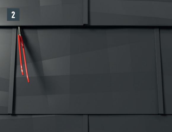 • Remove the fastening and cut into the upper patent fold (Image 2). Then pull the façadenpaneel FX.12 downwards.