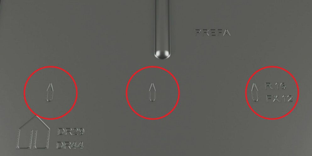 Align the starter strips with the embossed notch for the R.16 roof tile or FX.12 façadenpaneel FX.12 panel to the centre of the façade.