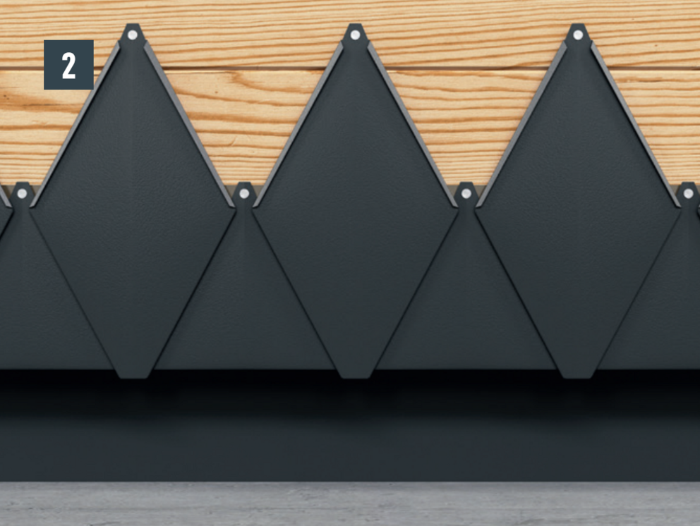 Each small rhomboid tile is fastened directly through the pre-punched fastening hole with a supplied ring nail 2.8/25.