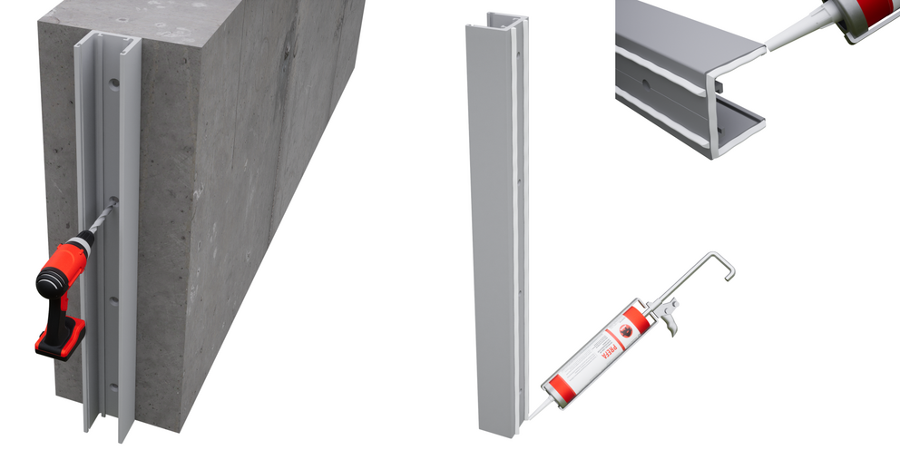 • Attach two beads of waterproof and permanently elastic sealant to the back of the U-profile.