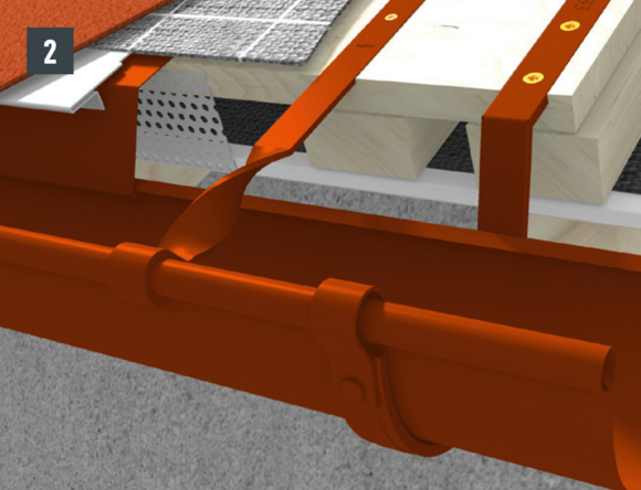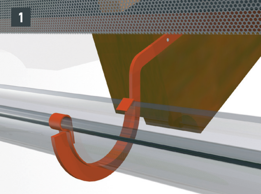 • Mount the gutter with a fall (approx. 3 mm per metre), fasten the gutter brackets as normal in the rafter spacing following the rafter spacing (Fig. 1).