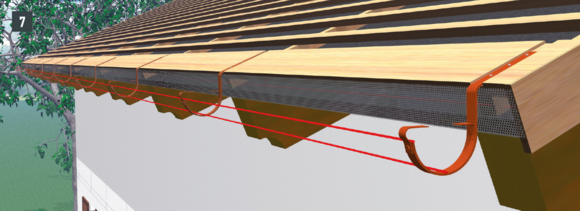 • Install the gutter brackets according to the given fall by the string with at least 2 Install gutter bracket nails 5×80 mm or screws 5×80 mm (Fig. 7).
