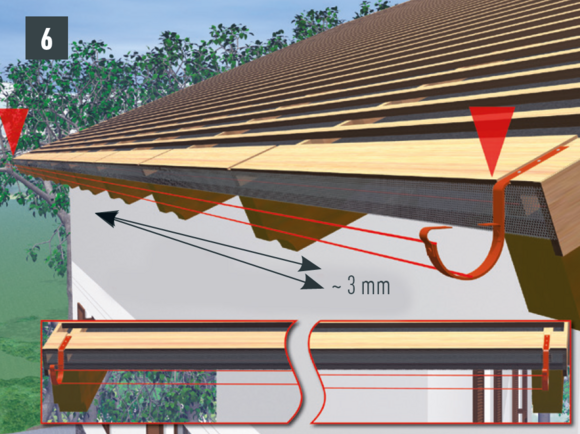 • Mark the bending edge of the gutter brackets. The gutter bead must be below the imaginary, extended course of the roof (Fig. 4).