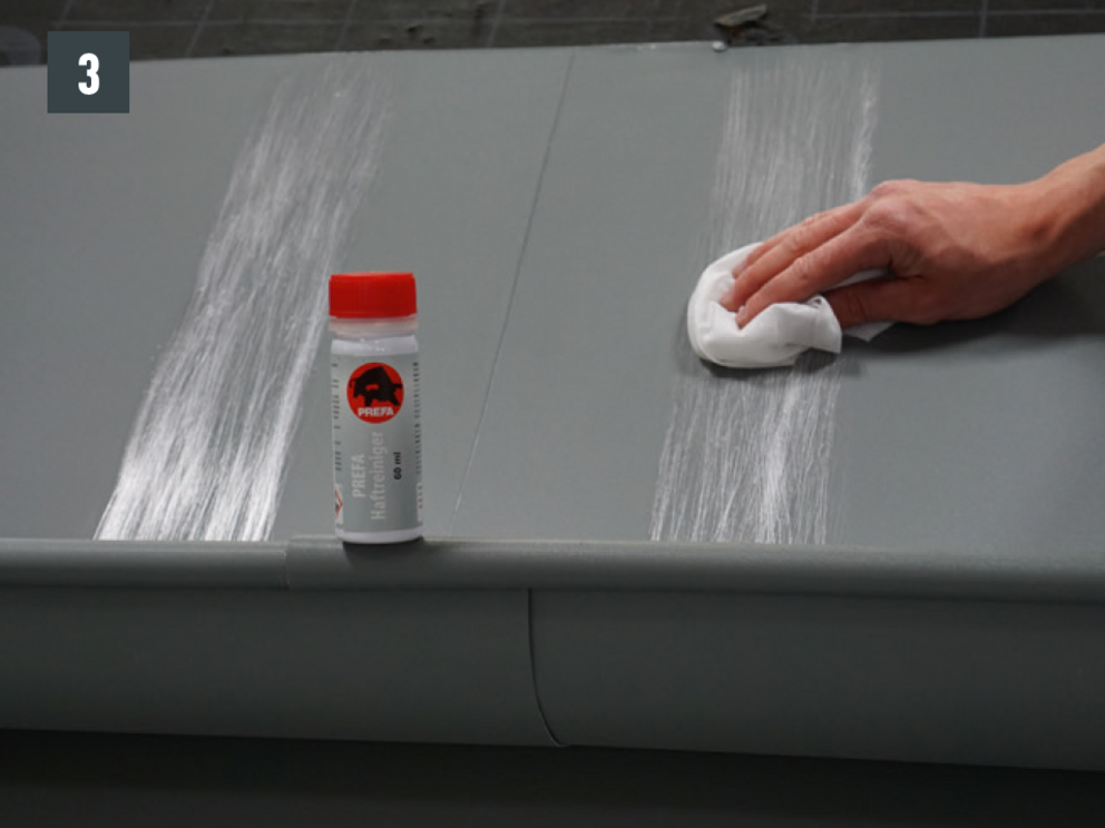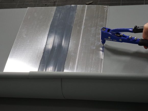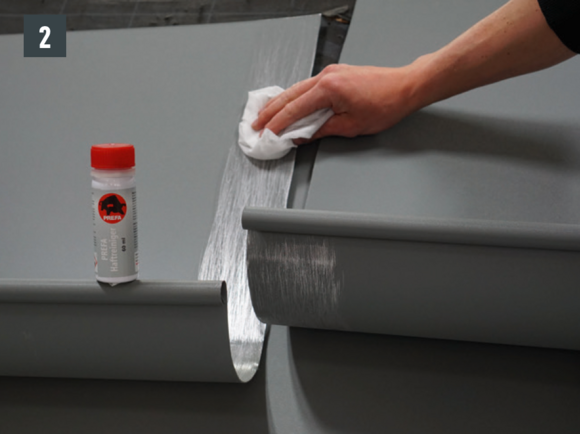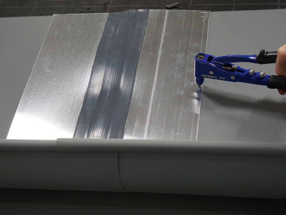 The joint can be made as a glued or riveted version. Riveted joints must also be sealed with PREFA special silicone.