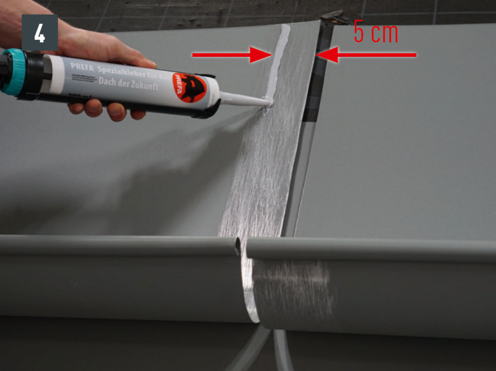 On-roof joint with 1 special adhesive cartridge
