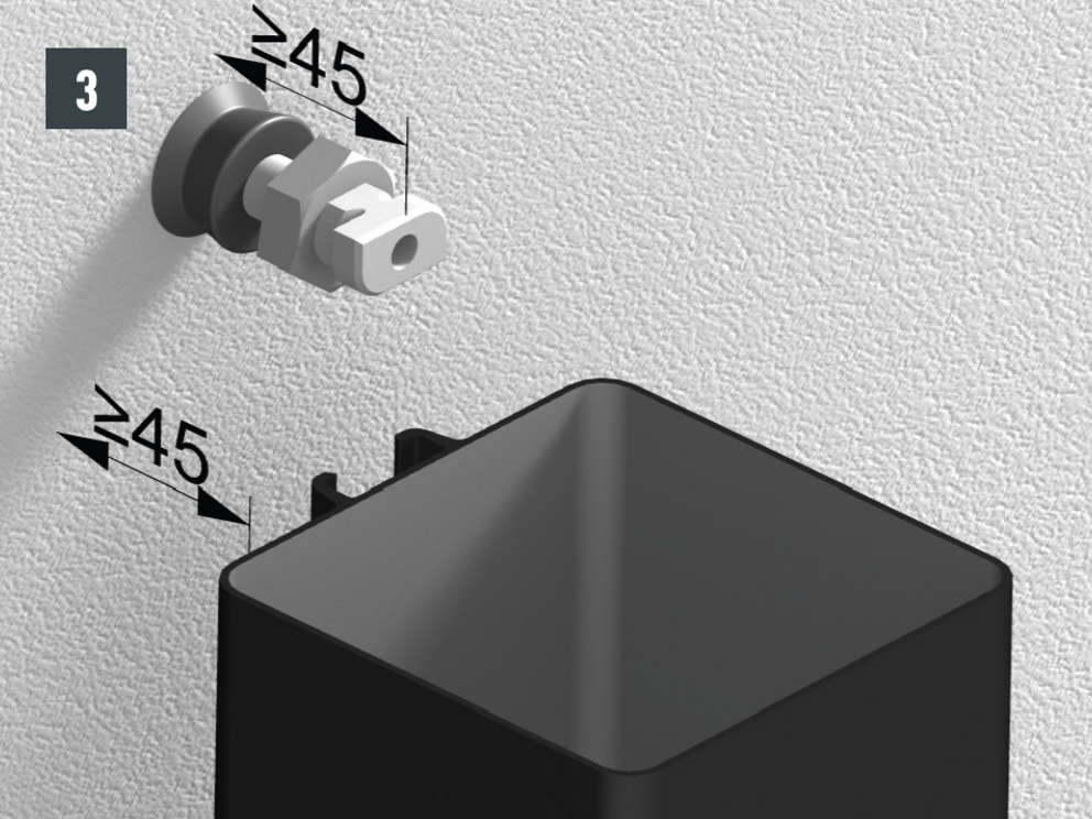• Observe a distance of at least 45 mm between the wall and the square downpipe (Fig. 3).