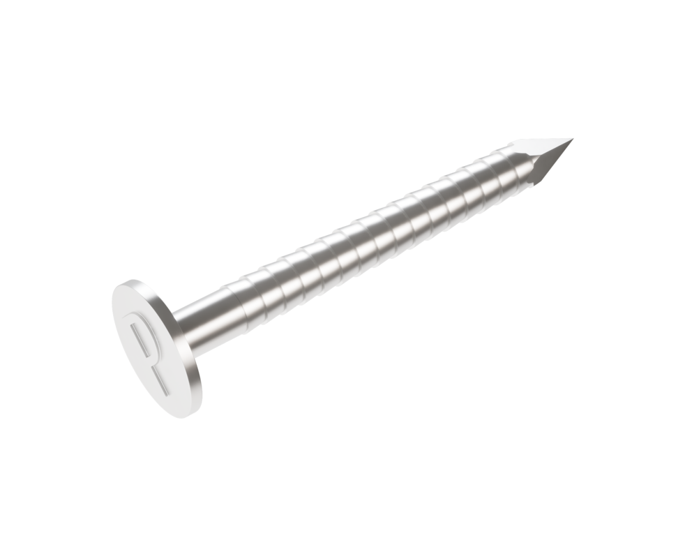 For fastenings of standing seam coverings, clips with nails, screws or rivets made of stainless steel are to be used. For this reason, PREFA offers stainless steel grooved nails in different lengths for fastening PREFALZ roof coverings.