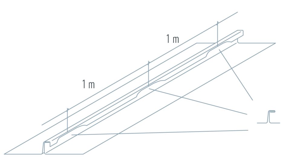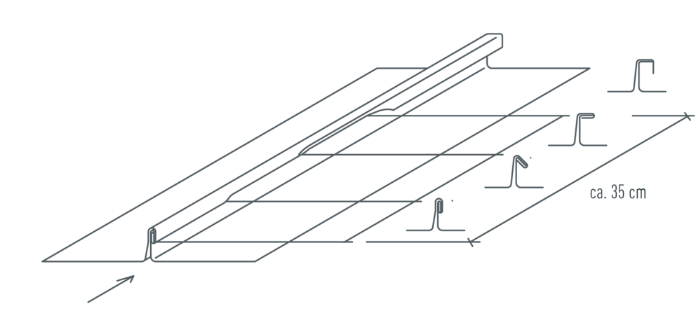 Before closing the fold mechanically, first tack the fold lightly at intervals of approx. 1 meter with the angle standing seam closer (see figure below).