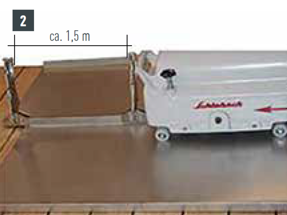Fix the tray over the entire length with seam clamps (see Image 1) at a distance of approx. 1.5–2.0 m (see Image 2). Thus both vertical legs will be compressed to 90°.