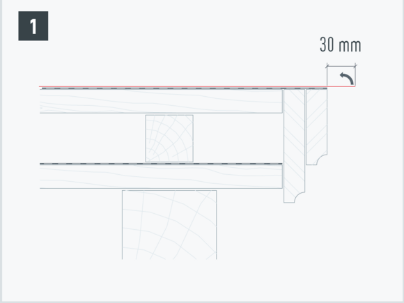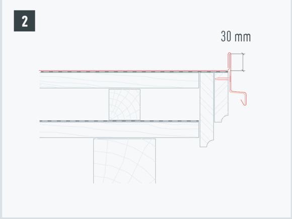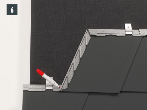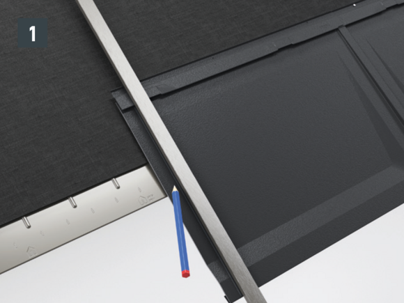 Measure from the planned top of the first roof tile 450 mm towards the eaves (ensure that the eaves overhang is between 30 and 80 mm). Make 150 mm (starter strip width) from below a mark (= starter strip width upper edge).