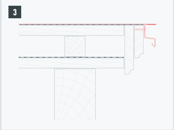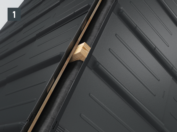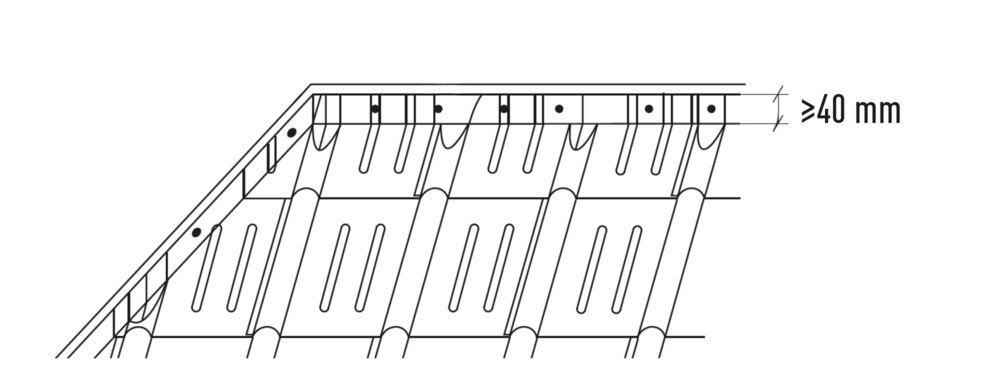 To ensure that the roof is protected against drifting snow, it is absolutely necessary to raise the PREFA roof covering in the notch and ridge areas at least 40 mm.