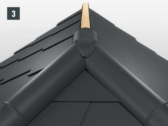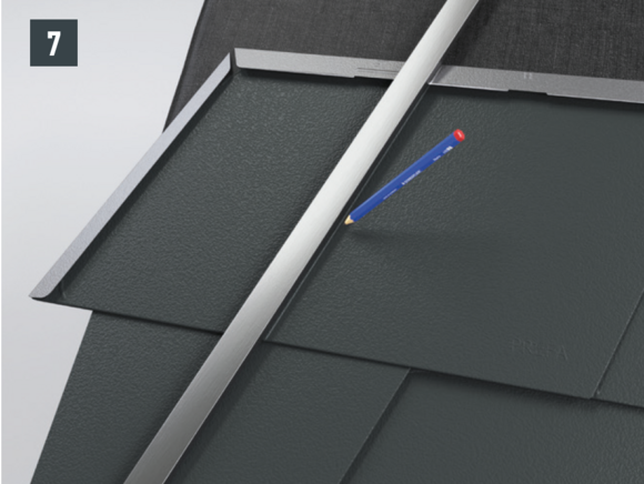 With each left-hand upstand of the shingle (verge flashing and edging), the folds running diagonally downwards are to be notched in order to avoid any capillary action.