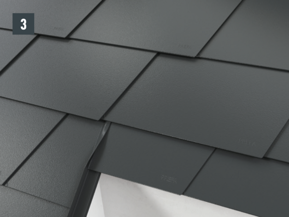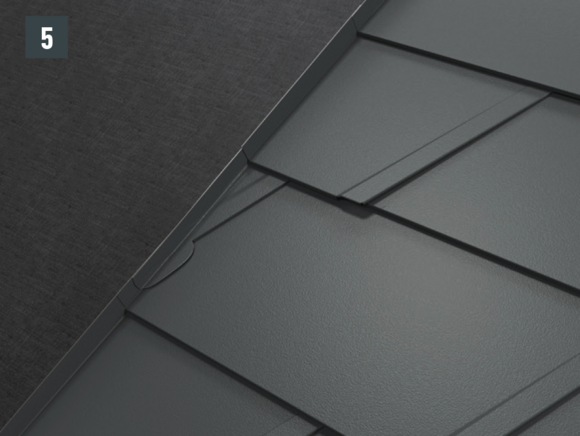 After preparing the DS.19 shingle, the joint flashing (e.g. edge cladding or wall connection cove) can be executed and worked into the roof covering.