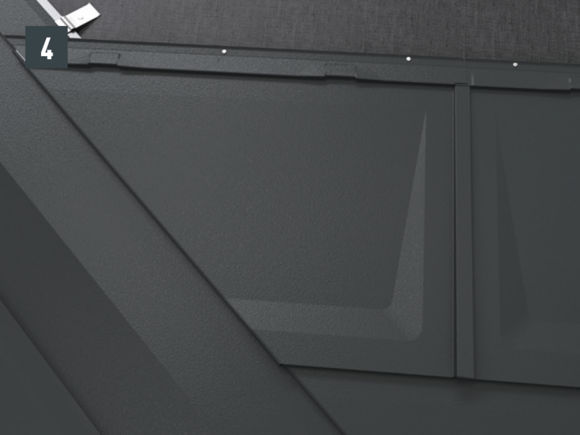 After preparing the shingle, the connection flashing (e.g. gable cladding or wall connection cove) can be produced and worked into the covering.