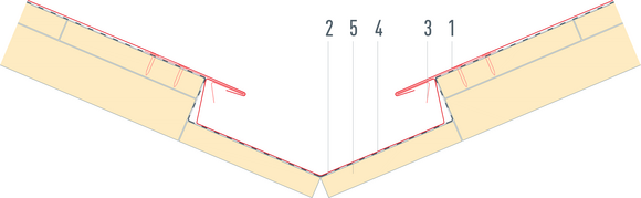 When using the safety valley, the valley joint can also be designed in such a way that the valley/panel joint intersection point coincides.