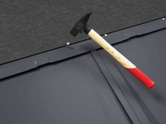 Fasten the R.16 roof tiles with the supplied PREFA 2.8/25 grooved nails (base attachment of 3 pcs. per R.16 roof tile). For PREFA coverings over multiple layers of bitumen (e.g. bitumen shingles), you will need longer grooved nails, such as 2.8/40. Please state separately when ordering.