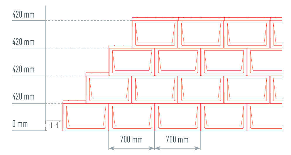 Horizontal lacing: 700 mm (every second row offset by 350 mm)