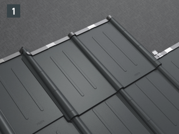 The roof tiles make laying in both directions possible. If the circumstances allow it (e.g. with pitched roofs and pent roofs), coverage towards the weather side is preferred.