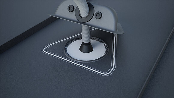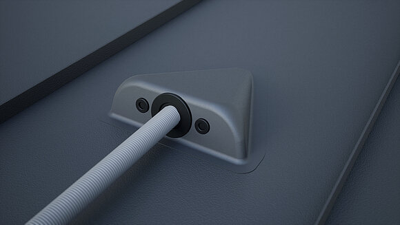 Drill the hole to the required diameter, glue on the pipe collar and feed the corrugated tube through. Roughen, clean and let the bonding surfaces dry. Pierce the grommet with a screwdriver.