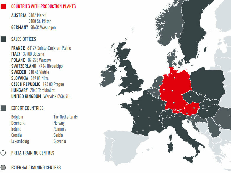 PREFA Aluminiumprodukte GmbH has enjoyed success throughout Europe for over 75 years in the development, production and marketing of roof and façade systems made from aluminium. In total, the PREFA Group employs around 800 people in 21 countries. Over 5000 high-quality products are produced exclusively in Austria and Germany. Each year, 4850 partners are trained in 32 training centres across Europe. The traditional company is part of the corporate group run by industrialist Dr Cornelius Grupp. The group employs over 9000 people in over 40 production locations worldwide.